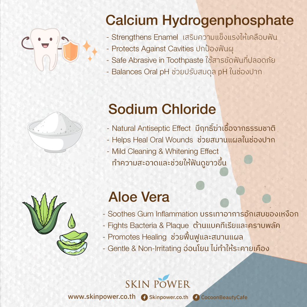 - Sodium Chloride (Natural Salt) – Has mild antiseptic properties, reduces bacteria, and helps keep gums healthy.