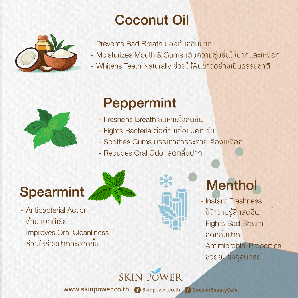 - Mentha Piperita Oil* (Peppermint) – Provides strong freshness, cooling effect, and antibacterial action.